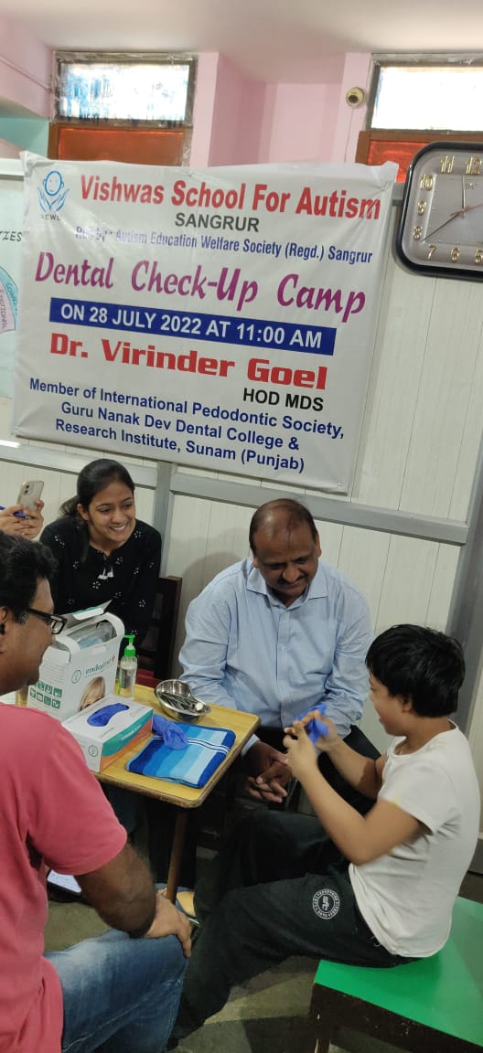 An oral health checkup camp was organised at Vishwas School for Autism on 28th July 2022. A total of 25 autistic children were examined by department of Pediatric & Preventive Dentistry, Sunam. The caries preventive treatment was provided to 18 needful children.