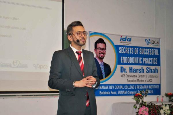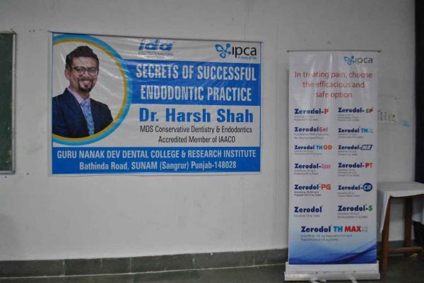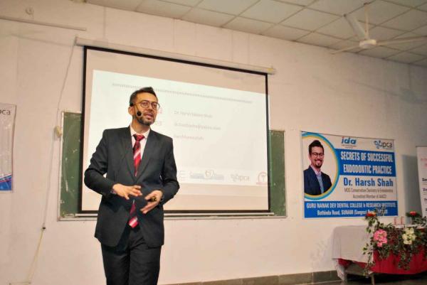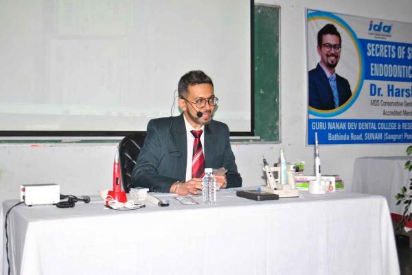 Guru Nanak Dev Dental College conducted a CDE program on 'Secrets of endodontic practice' by Dr. Harsh Shah in association with IDA Sunam Branch on Feb 17,2025. Faculty members, IDA members and students