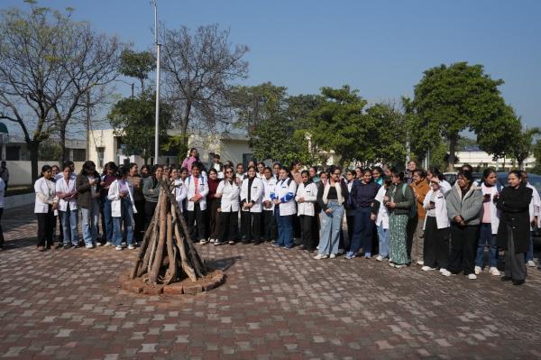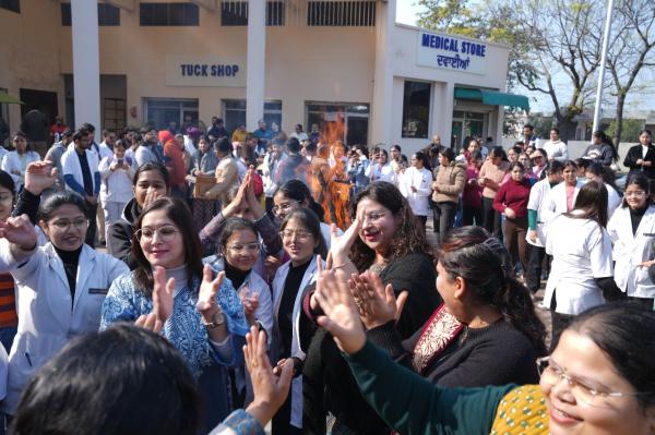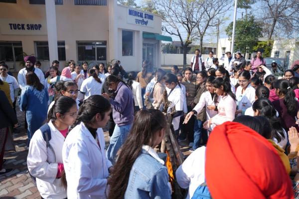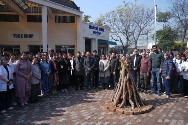 Guru Nanak Dev Dental College Management Staff & Students celebrated Lohri in the campus with traditional flavours. Lohri puja was done by offering Sesame seeds to the holy fire